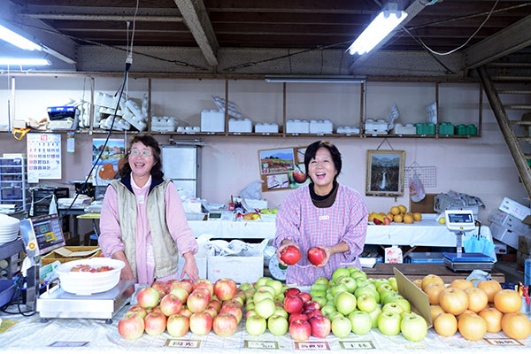 栽培しているのは、甘味が強く、酸味がしっかりした新世界、酸味が強くかたくて大ぶりな陽光、甘くて人気のぐんま名月、シャキシャキしたふじ、そして香りの良い王林など多品種である。